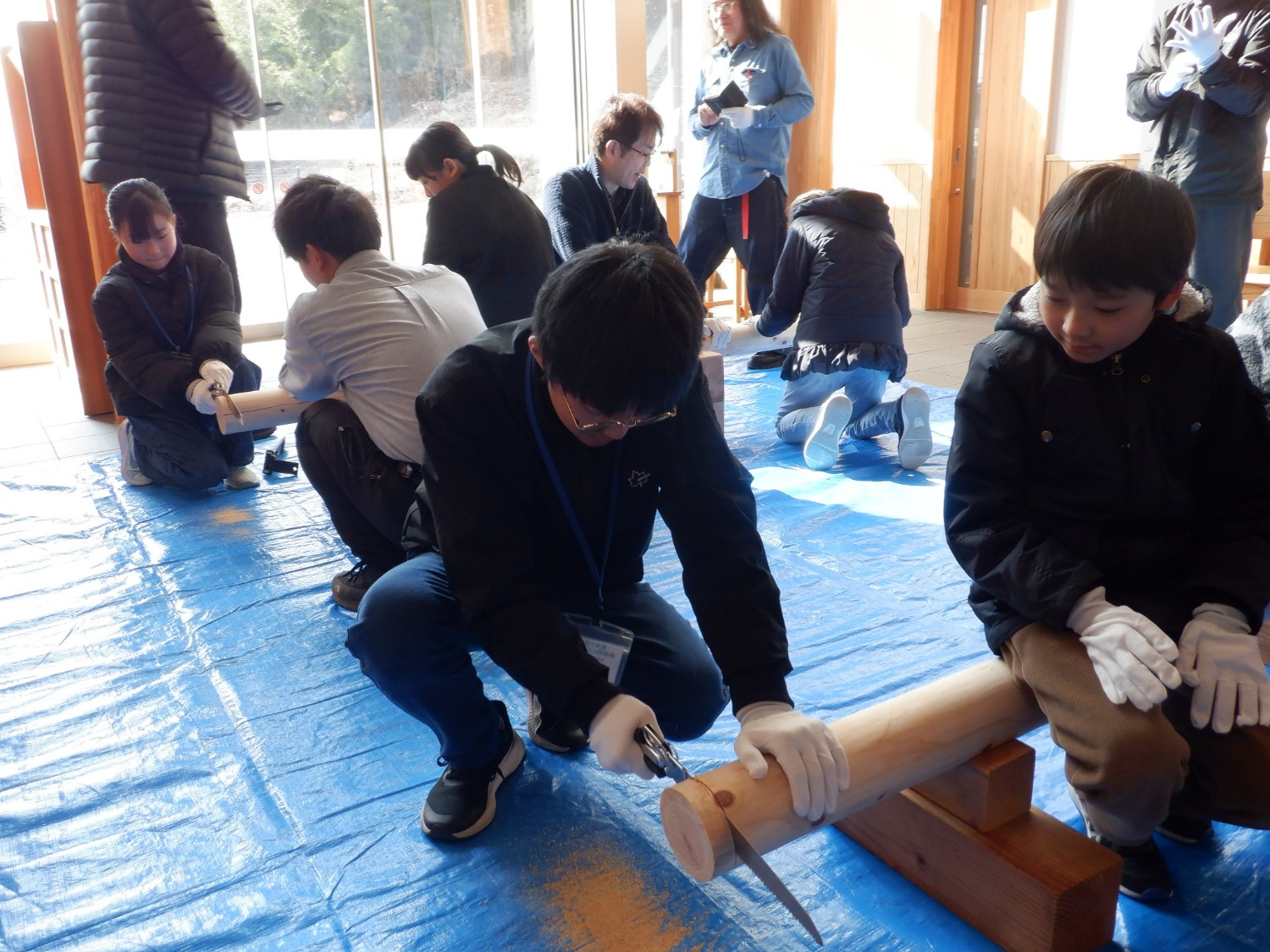 ふくしまエコ探検隊は、市内の小学4年生から6年生を対象に年間のテーマを定め、様々な体験を通して環境について学ぶ環境教室です。 E-ふくブログでは、年間を通してふくしまエコ探検隊の活動を紹介していきます。 第5回活動テーマ「木材などの生産機能と林業の役割」 今回は、森林の維持管理や木材の循環利用について理解を深めるため、福島県北森林組合を訪問しました。 はじめに、森林の手入れの方法や、木を育てて伐採して資源として活用し、再び植林するという森林の循環の仕組みについて説明を受けました。間伐の必要性や、森を健やかに保つために行われている日々の管理について具体的なお話を伺い、森林は自然に存在するだけでなく、人の手による適切な管理によってそのはたらきが保たれていることを学びました。 その後、間伐材を使ったコースター作りを行いました。のこぎりで丸太を切る作業に挑戦し、最初は思うように切れず苦戦する様子も見られましたが、協力しながら最後まで取り組んでいました。体験を通して、間伐が森を元気にするための大切な作業であることを実感する機会となりました。 今回の活動では、森林の多面的機能が、林業の仕事によって支えられていることを学びました!