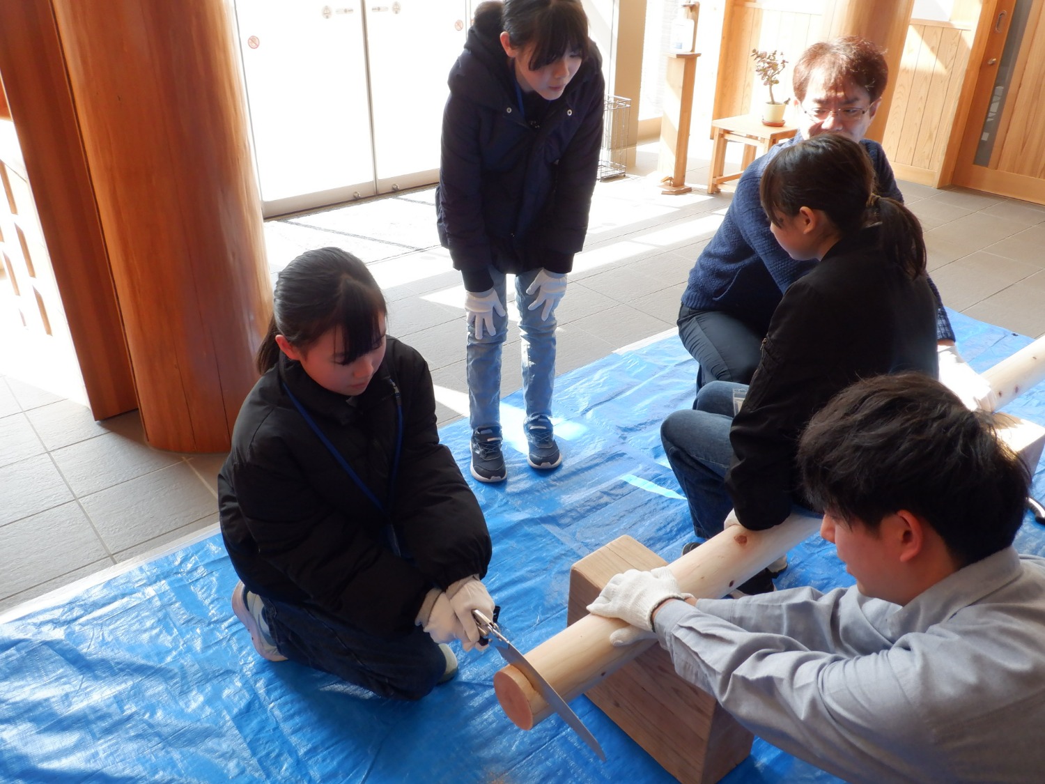 ふくしまエコ探検隊は、市内の小学4年生から6年生を対象に年間のテーマを定め、様々な体験を通して環境について学ぶ環境教室です。 E-ふくブログでは、年間を通してふくしまエコ探検隊の活動を紹介していきます。 第5回活動テーマ「木材などの生産機能と林業の役割」 今回は、森林の維持管理や木材の循環利用について理解を深めるため、福島県北森林組合を訪問しました。 はじめに、森林の手入れの方法や、木を育てて伐採して資源として活用し、再び植林するという森林の循環の仕組みについて説明を受けました。間伐の必要性や、森を健やかに保つために行われている日々の管理について具体的なお話を伺い、森林は自然に存在するだけでなく、人の手による適切な管理によってそのはたらきが保たれていることを学びました。 その後、間伐材を使ったコースター作りを行いました。のこぎりで丸太を切る作業に挑戦し、最初は思うように切れず苦戦する様子も見られましたが、協力しながら最後まで取り組んでいました。体験を通して、間伐が森を元気にするための大切な作業であることを実感する機会となりました。 今回の活動では、森林の多面的機能が、林業の仕事によって支えられていることを学びました!